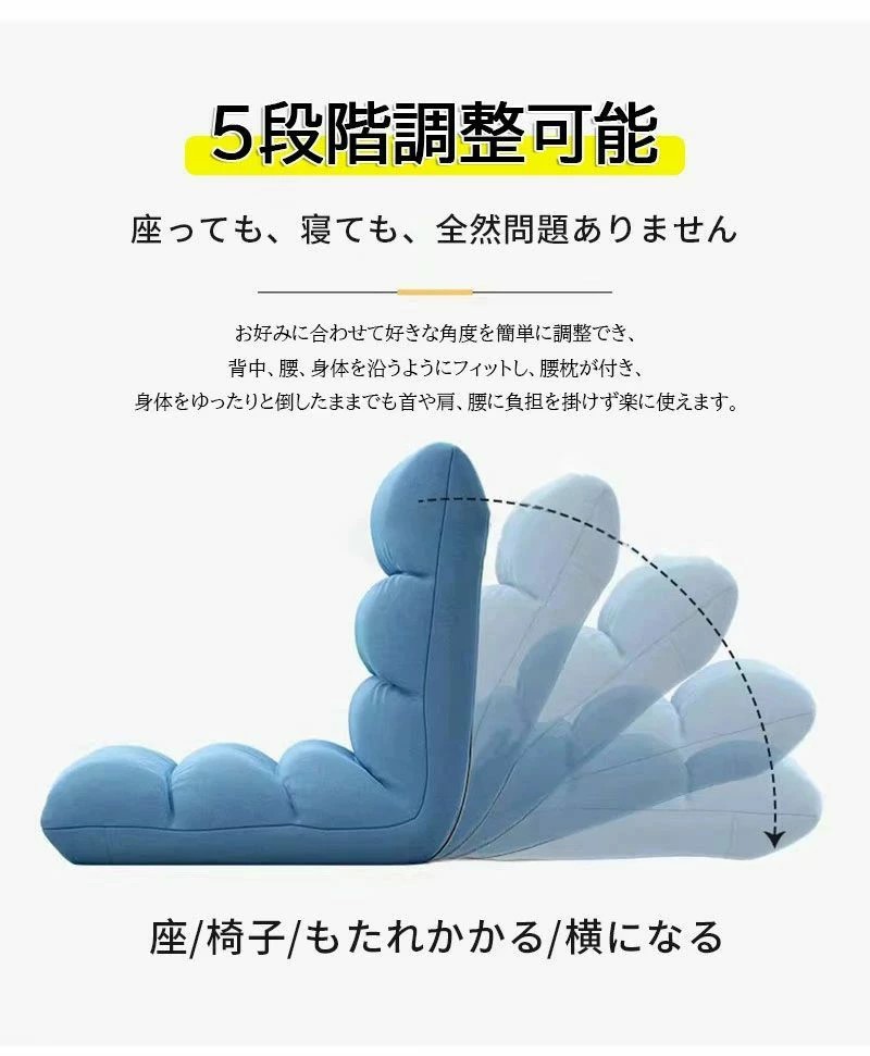 座椅子 折りたたみ5段階 1人掛けフロ ホワイト ピンク イエロー オレンジ ブルー グリーン コーヒー グレー