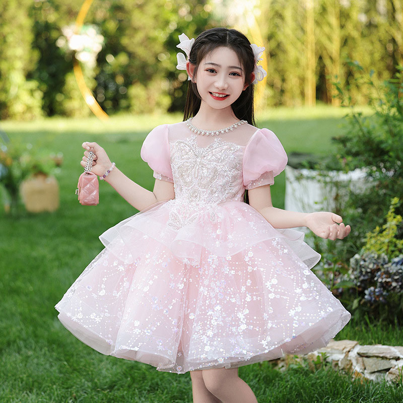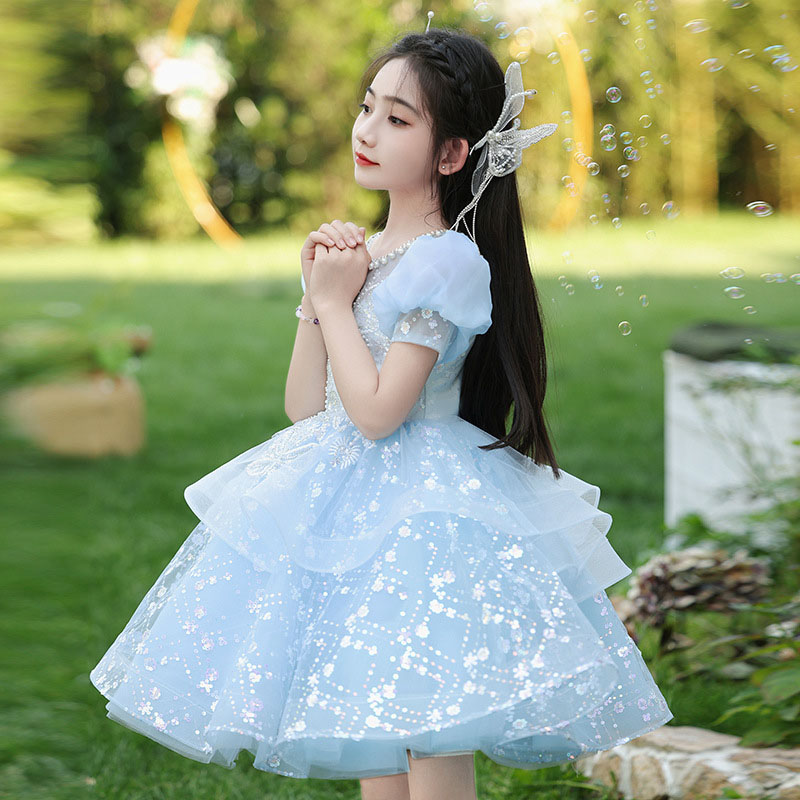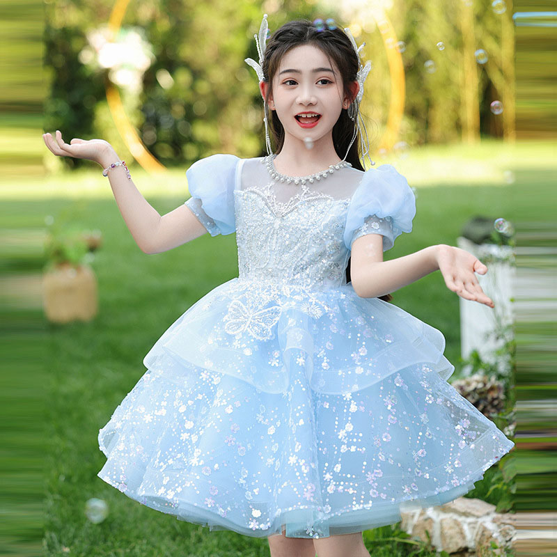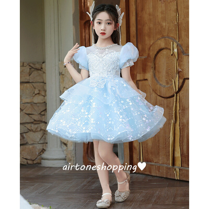 子供ドレス ブルー 水色 ショート丈 キッズ ベビー マタニティ 新作 ピンク ブルー 100 110 120 130 140 150 160