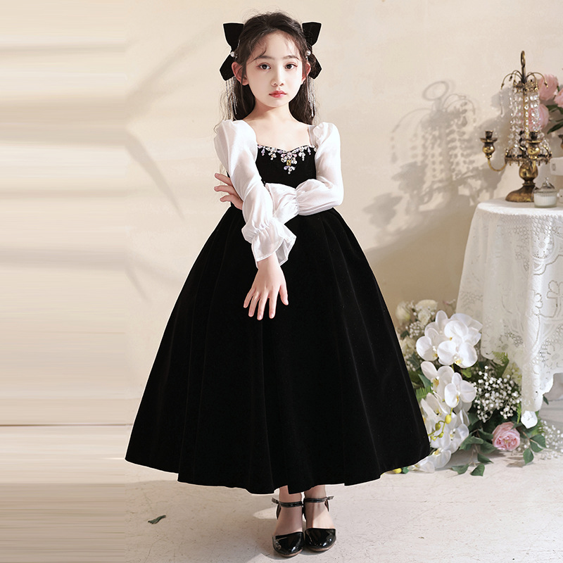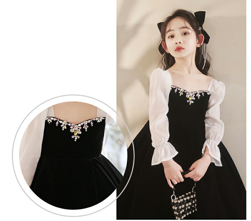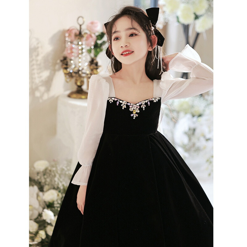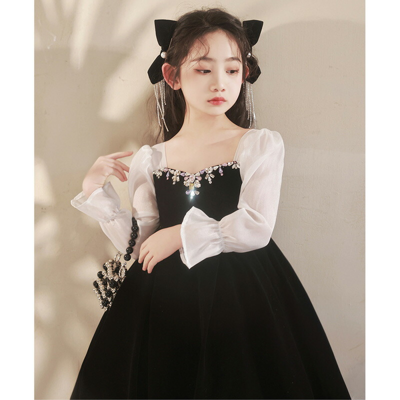 子供ドレス 黒 赤 ベロア ベルベット キッズ ドレス 新作 黒 赤 110 120 130 140 150 160