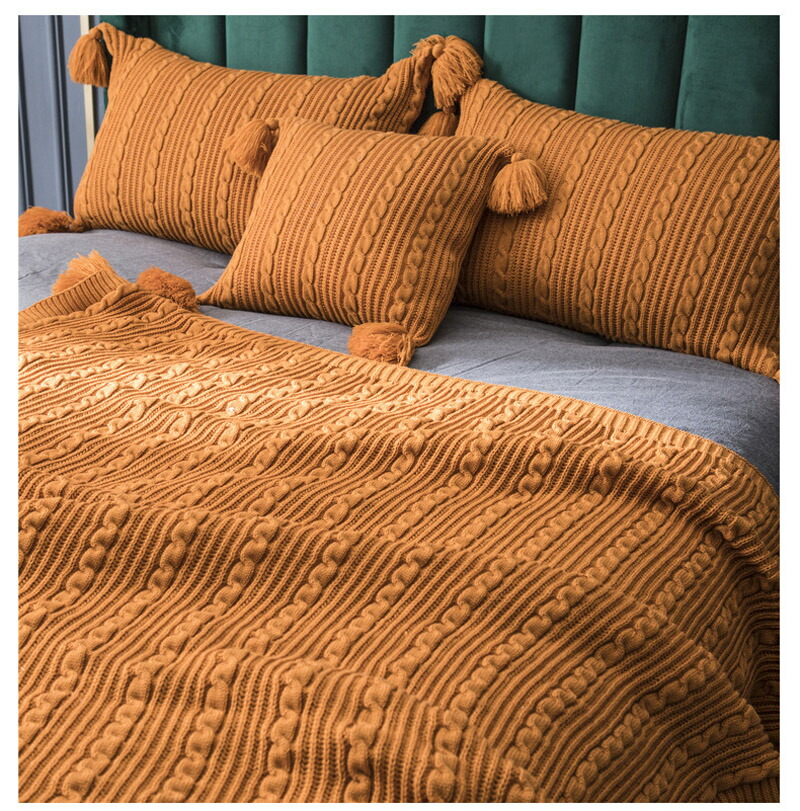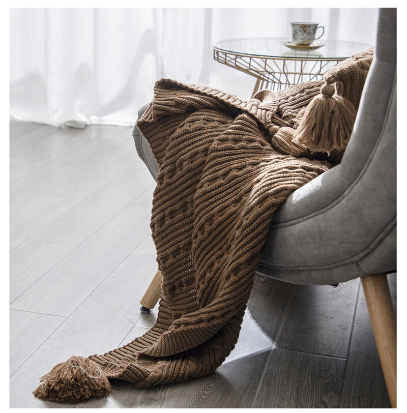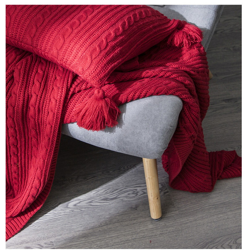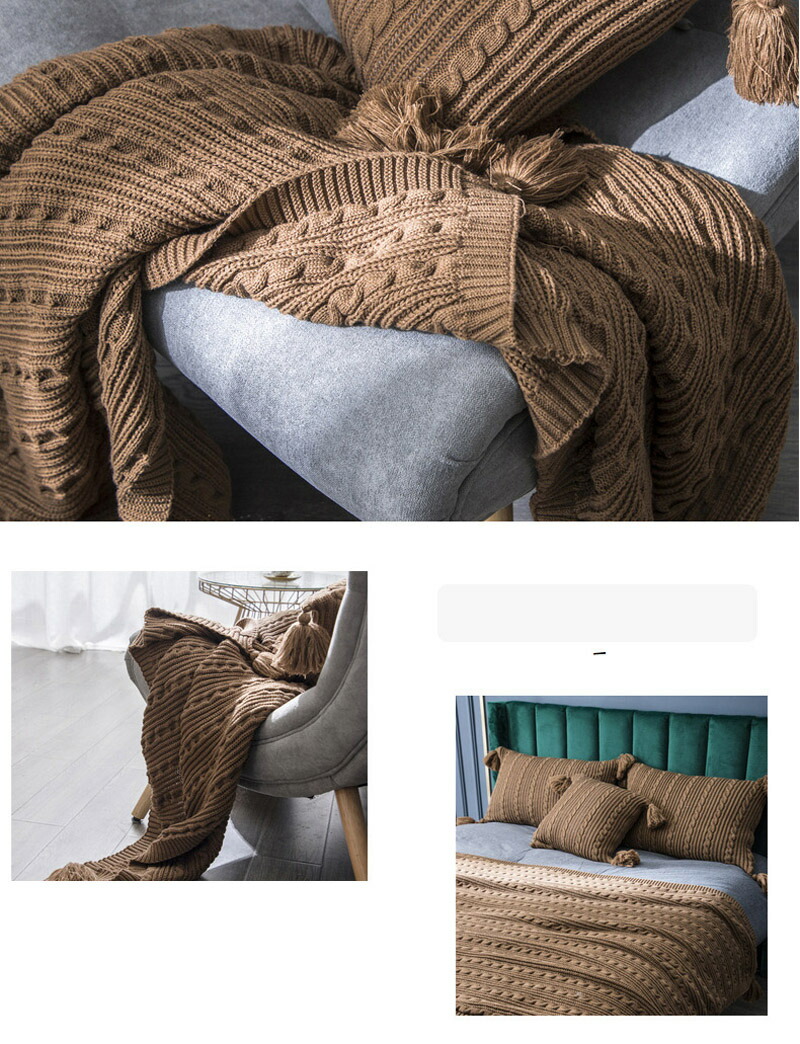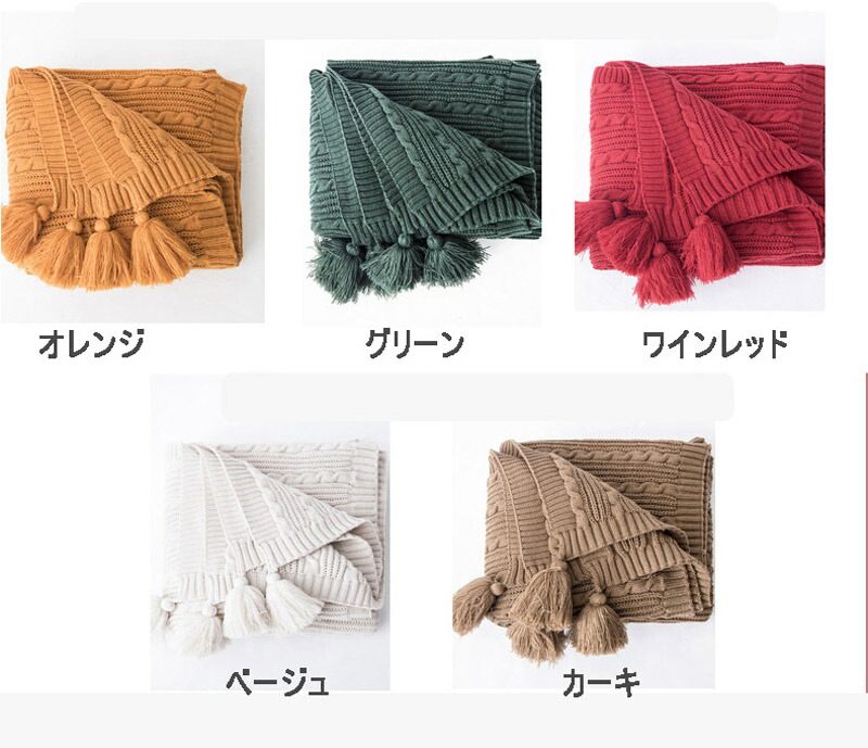 ニットブランケット フリンジブランケッ 寝具 毛布 ブランケット 豊富な品揃え ワインレッド グリーン オレンジ カーキ ベージュ
