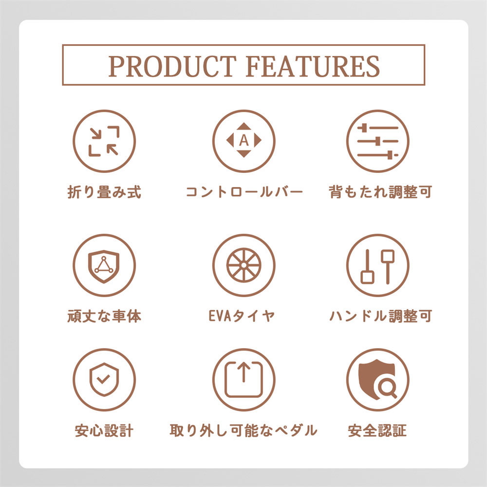 b.三輪車(押し棒&背もたれ&ベルト付き):1~2歳 子供が自由に歩ける前通常の三輪車としてお使いいただけます。 スデップに足を置けるので、ペダルに足が届かなくても大丈夫。