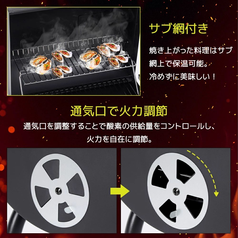 【通気口で火力調節】通気口を調整することで酸素の供給量をコントロールし、火力を自在に調節。【キャスター付き】凹凸のある庭先でもスムーズに移動。