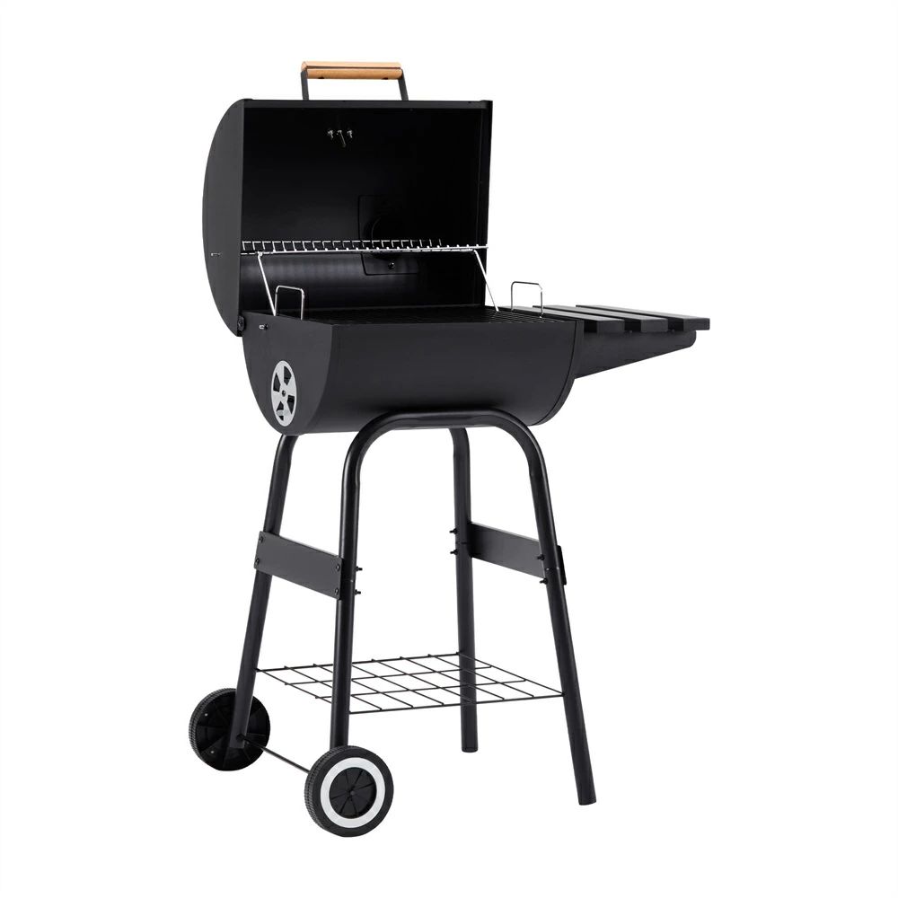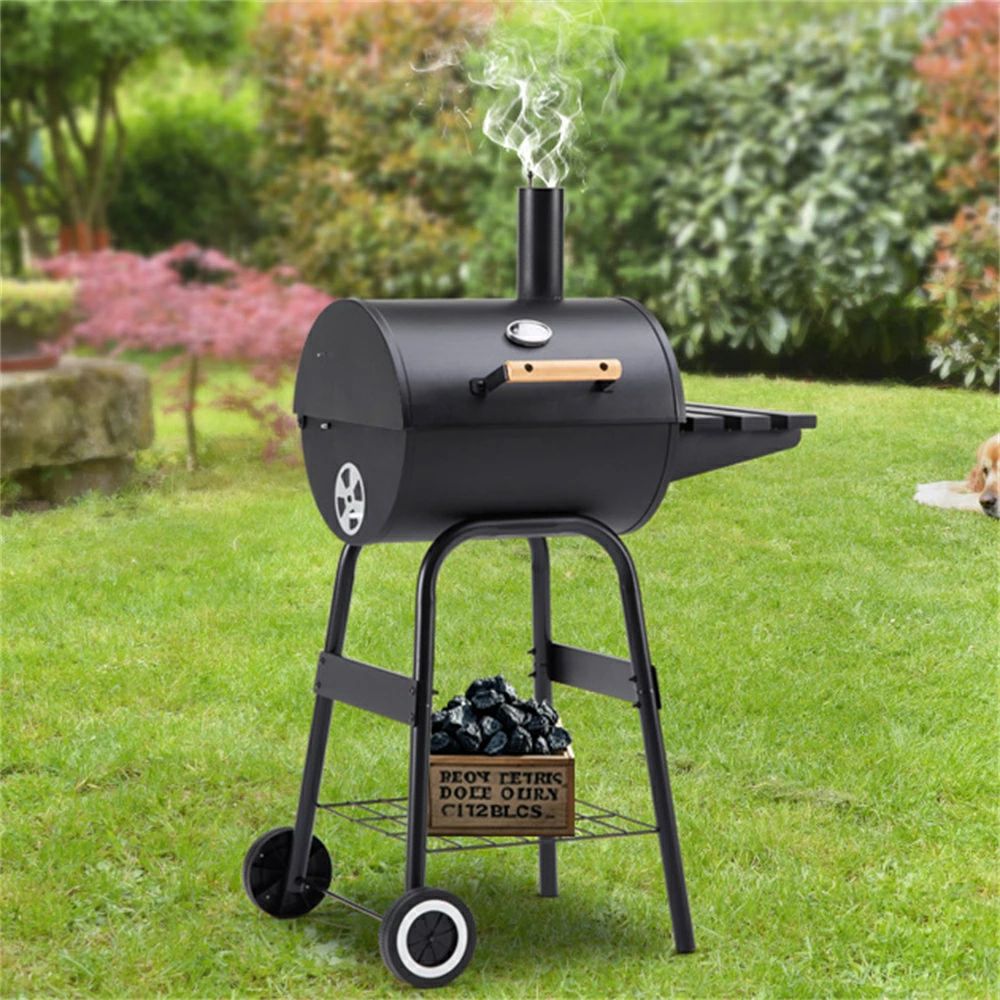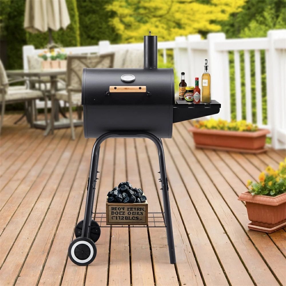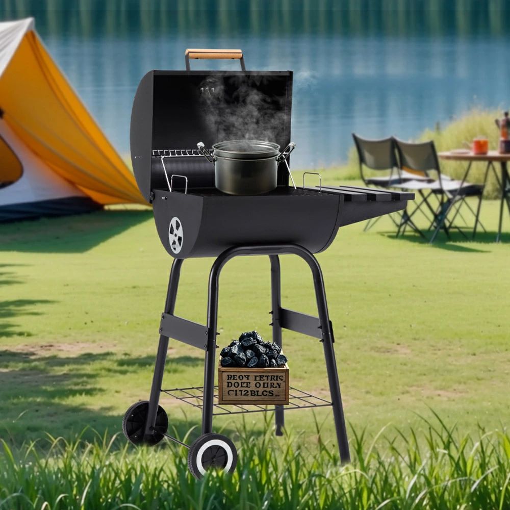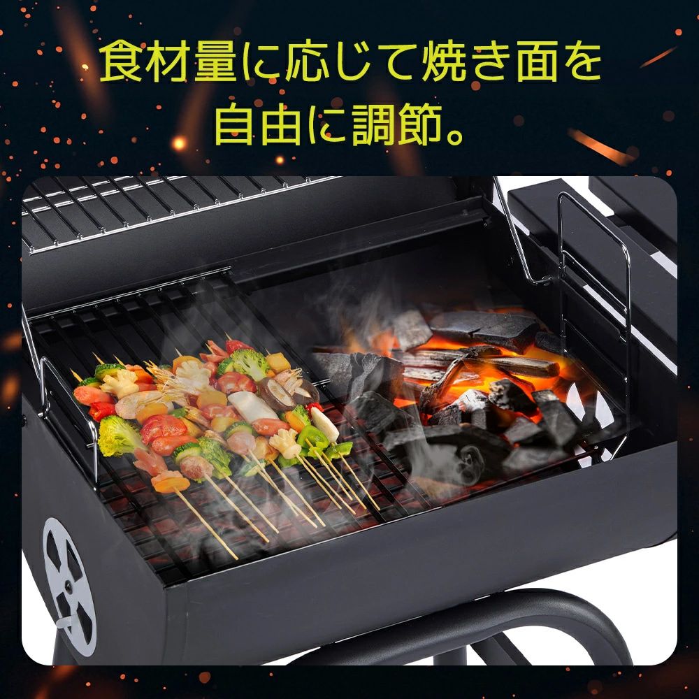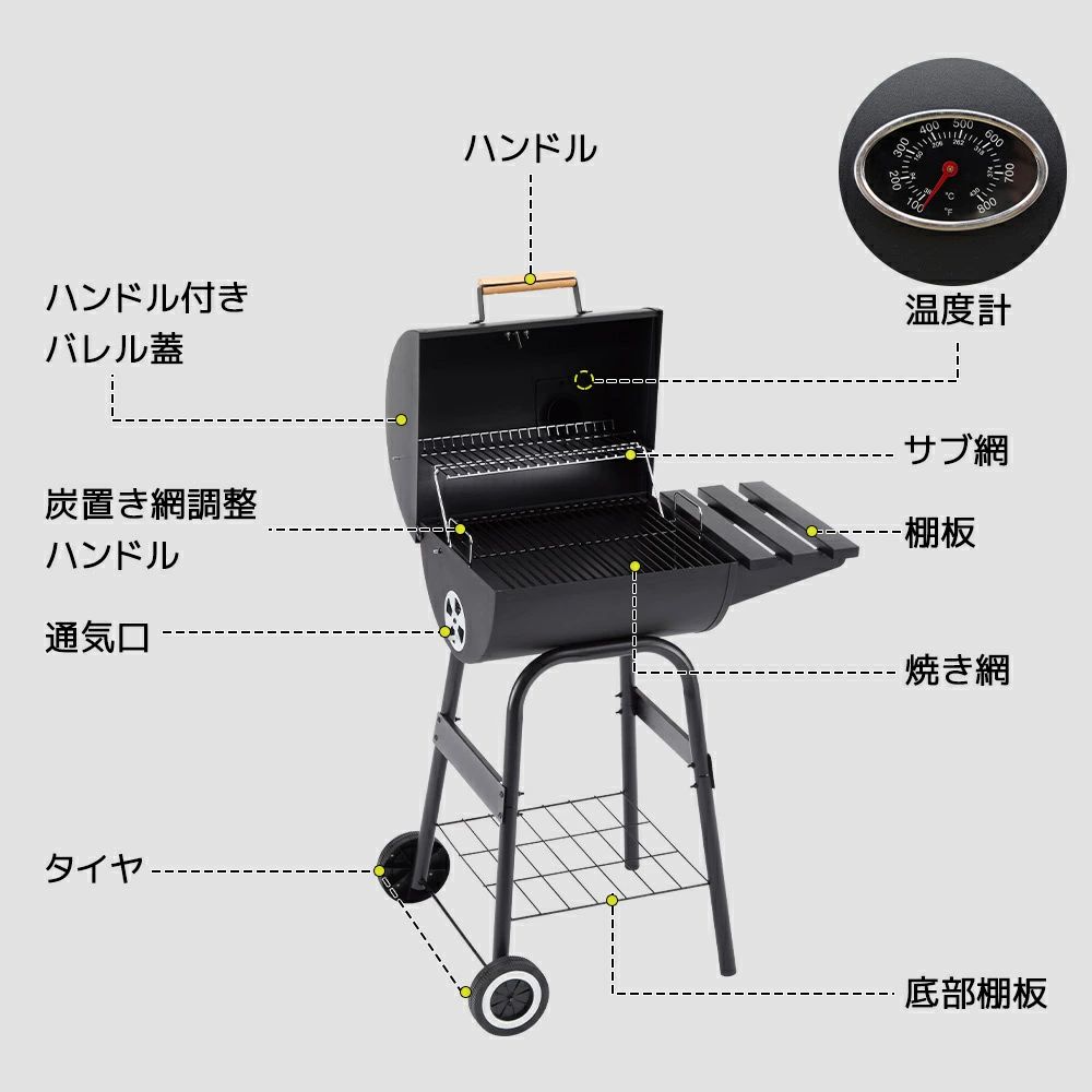 バーベキューコンロ BBQコンロ 焼き網 温度計 サイドテーブル キャスター 煙突付き 棚板 タイヤ追加 移動楽々 バーベキュー BBQ 屋外用 庭 キャンプ用 アウトドア