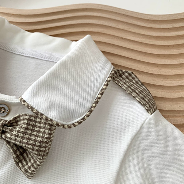 シアースリーブ ドッキングシャツ ボウタイシャツブラウス