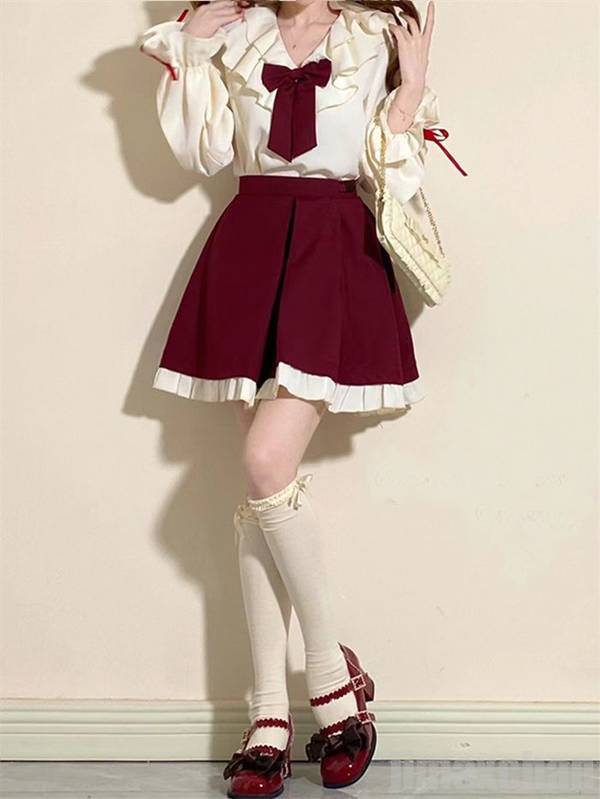 シアースリーブ ドッキングシャツ ボウタイシャツブラウス