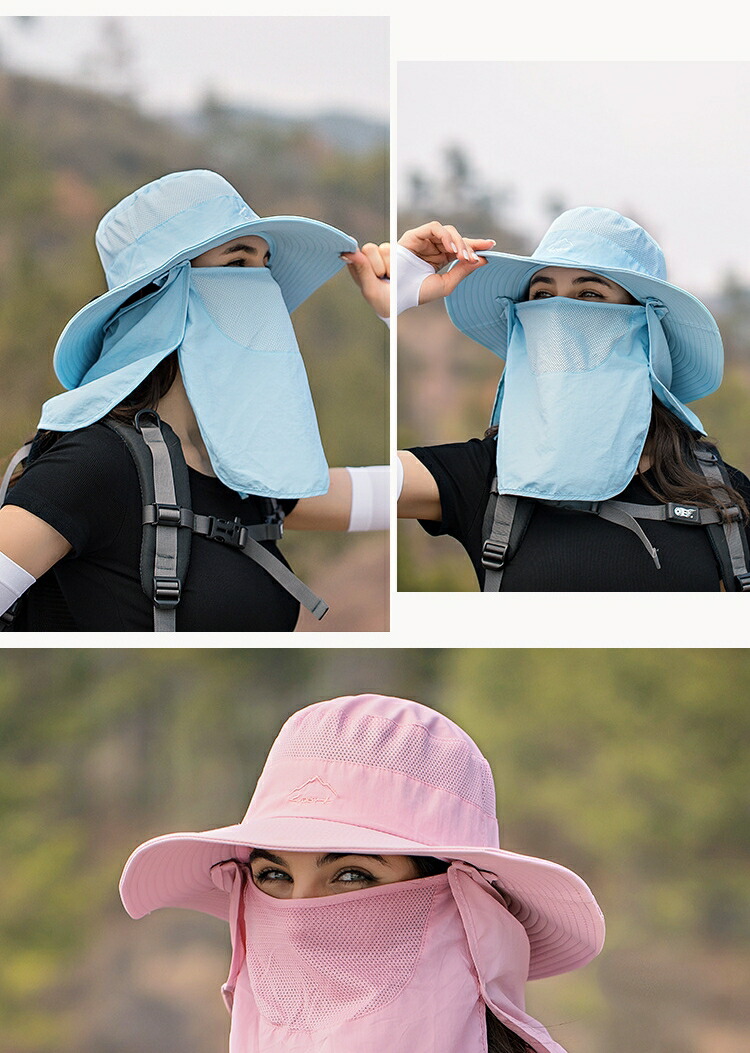 ビーチハット サーフハット メッシュ素材 ナイロン 折り畳み 紫外線防止 UV対策 暑さ対策 通気性良い ユニセックス つば広 はっ水 サイズ調整可能 ハイキング 釣り 農作業 旅行 登山 バケットハット サファリハット 3way ハット アドベンチャーハット 帽子 UVカット 紫外線対策 日焼け防止 日よけ 日除け つば有り 撥水 はっすい メンズ レディース 男性用 フェイスカバー付き 360度ガード 首ガード あご紐付き カバー取り外し可 アウトドア 折りたたみ 園芸