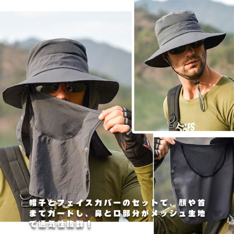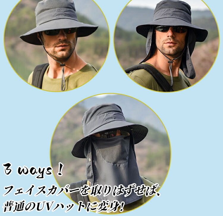 バケットハット サファリハット 3way ハット アドベンチャーハット 帽子 UVカット 紫外線対策 日焼け防止 日よけ 日除け つば有り 撥水 はっすい レディース 男性用 フェイスカバー付 メンズ