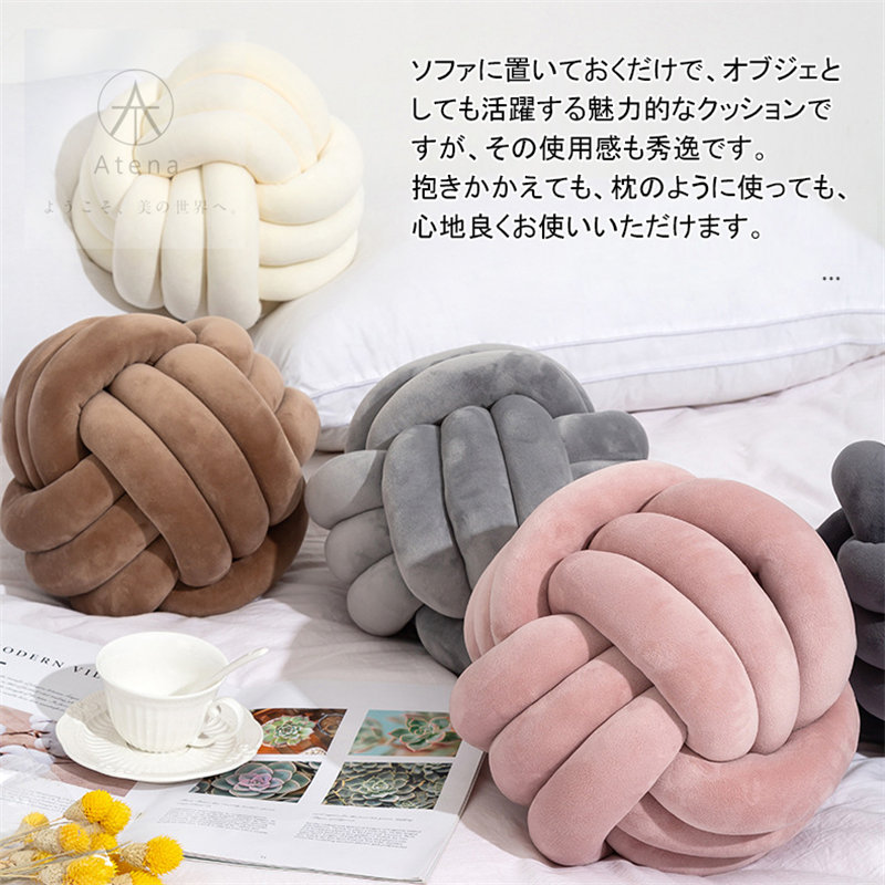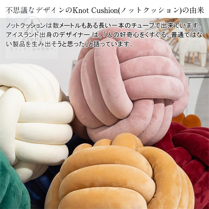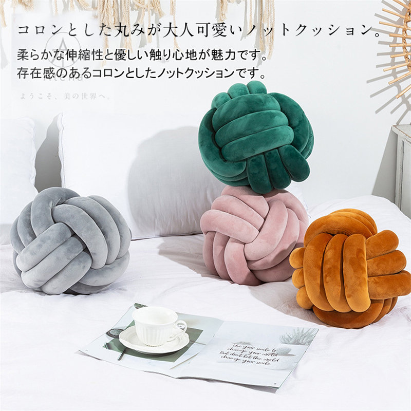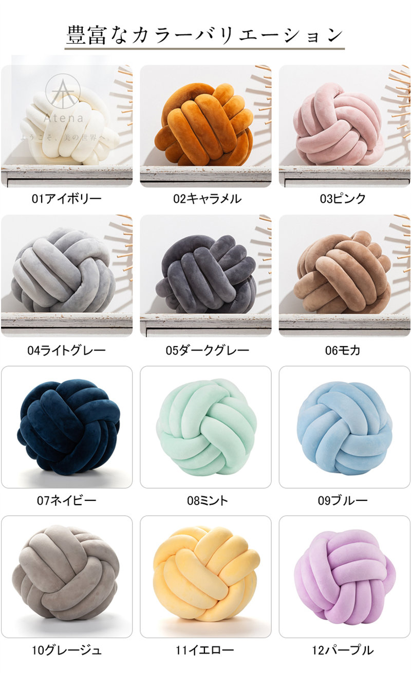 ノットクッション 結び目クッション ノ 01アイボリー 02キャラメル 03ピンク 04ライトグレー 05ダークグレー 06モカ 07ネイビー 08ミント 09ブルー 10グレージュ 11イエロー 12パープル 直径22cm 直径28cm 直径35cm