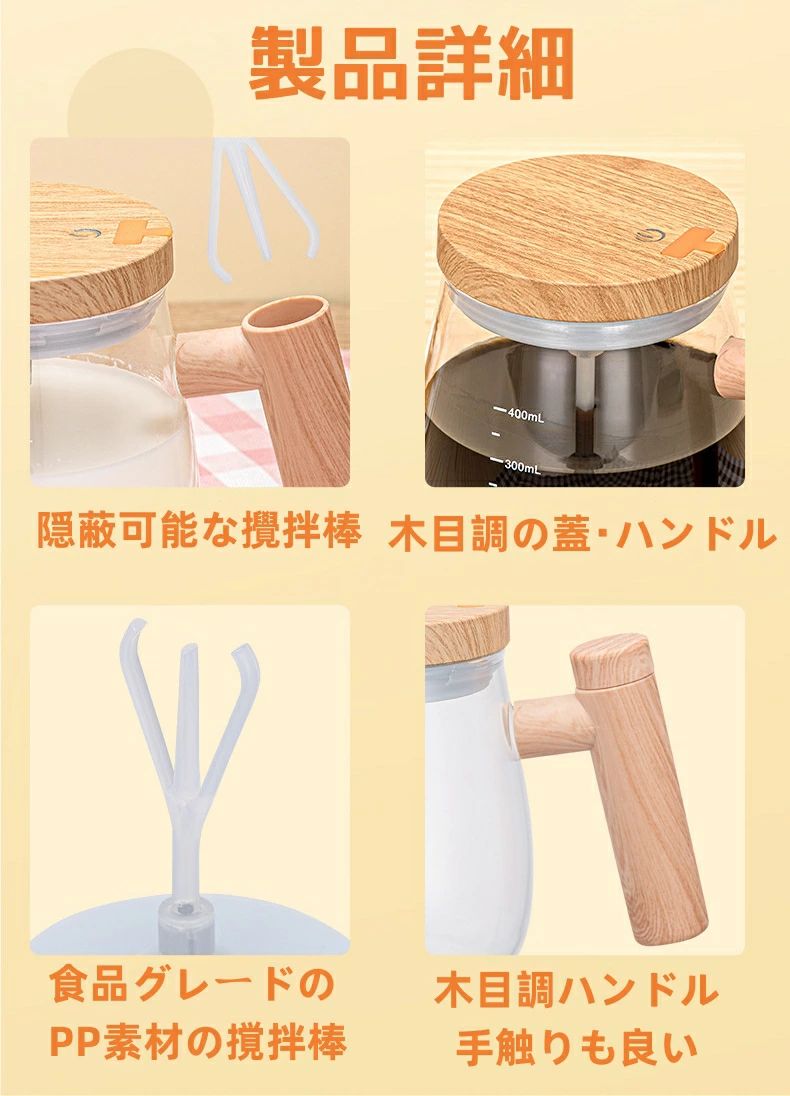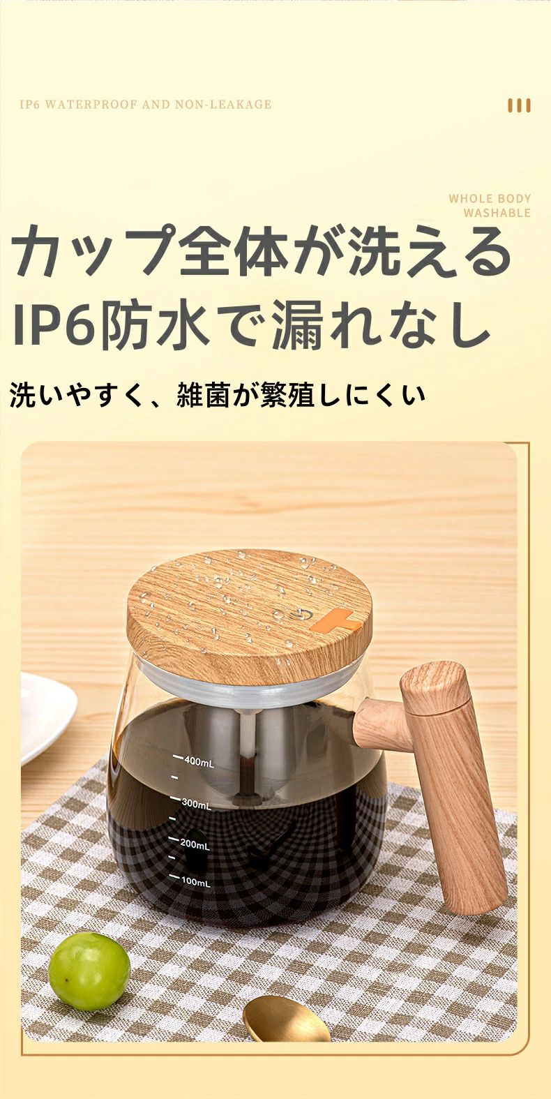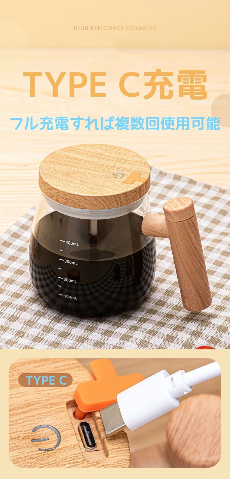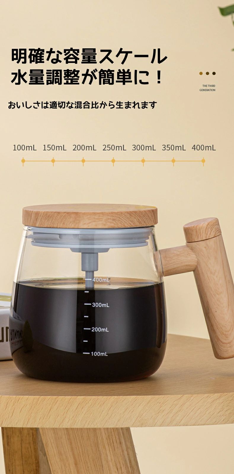 自動ミキサーカップ 400ML 自動攪拌 マグカップ 攪拌 ミキシングカップ ガラス製 大容量 シェーカーボトル USB&電池式 電動多機能 蓋付き ハンドル付き マグオートコーヒー 飲料 漏れ防止