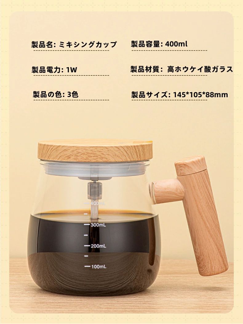 自動ミキサーカップ 400ML 自動攪 ホワイト ベージュ カラフル 電池式 充電式