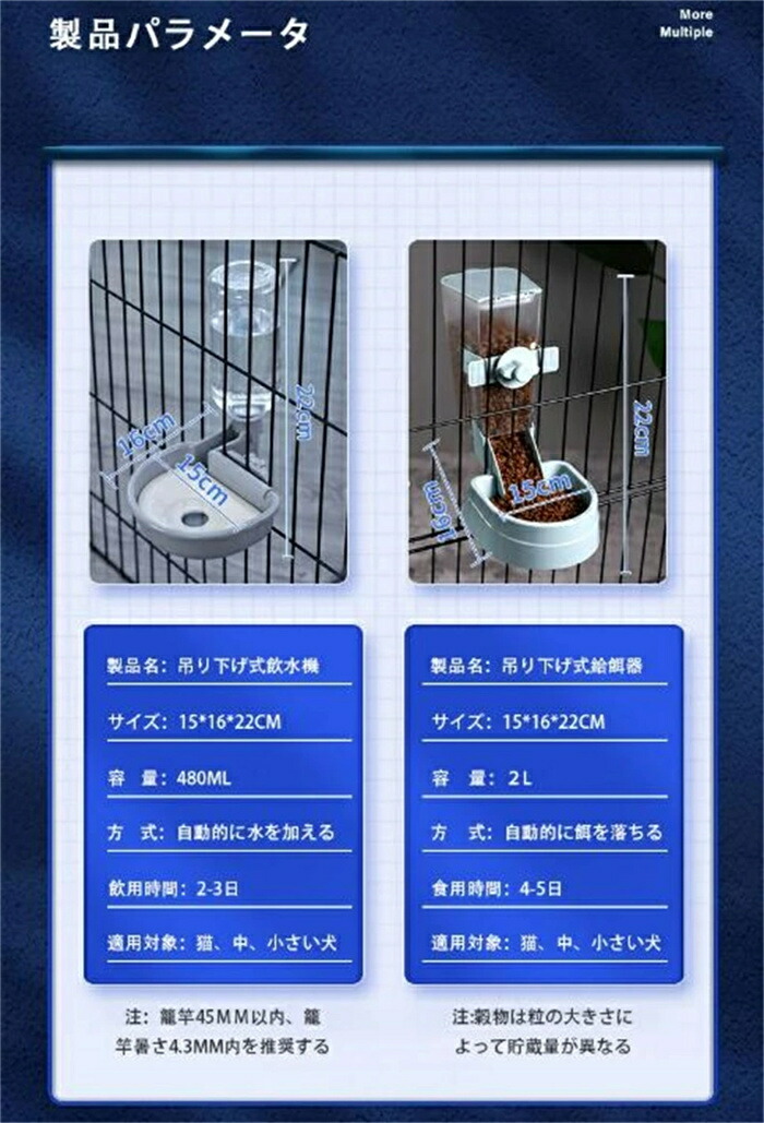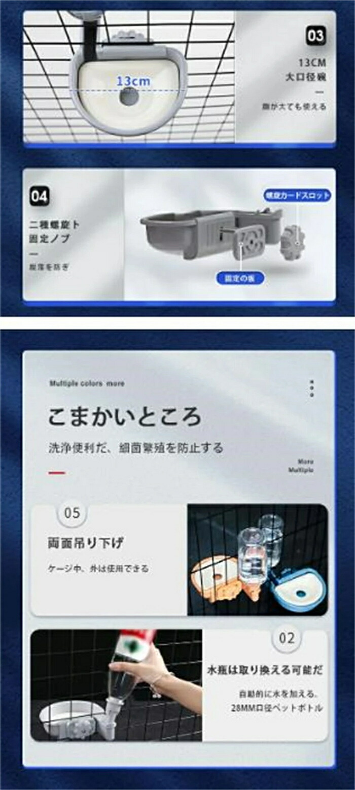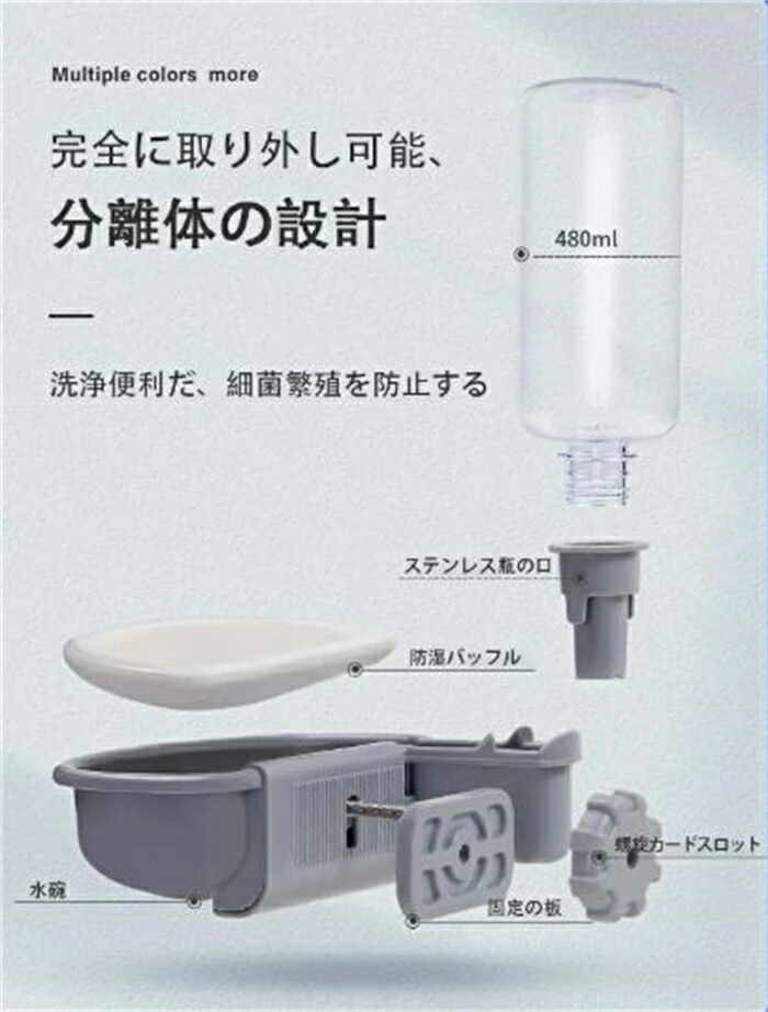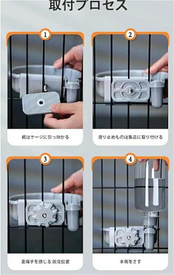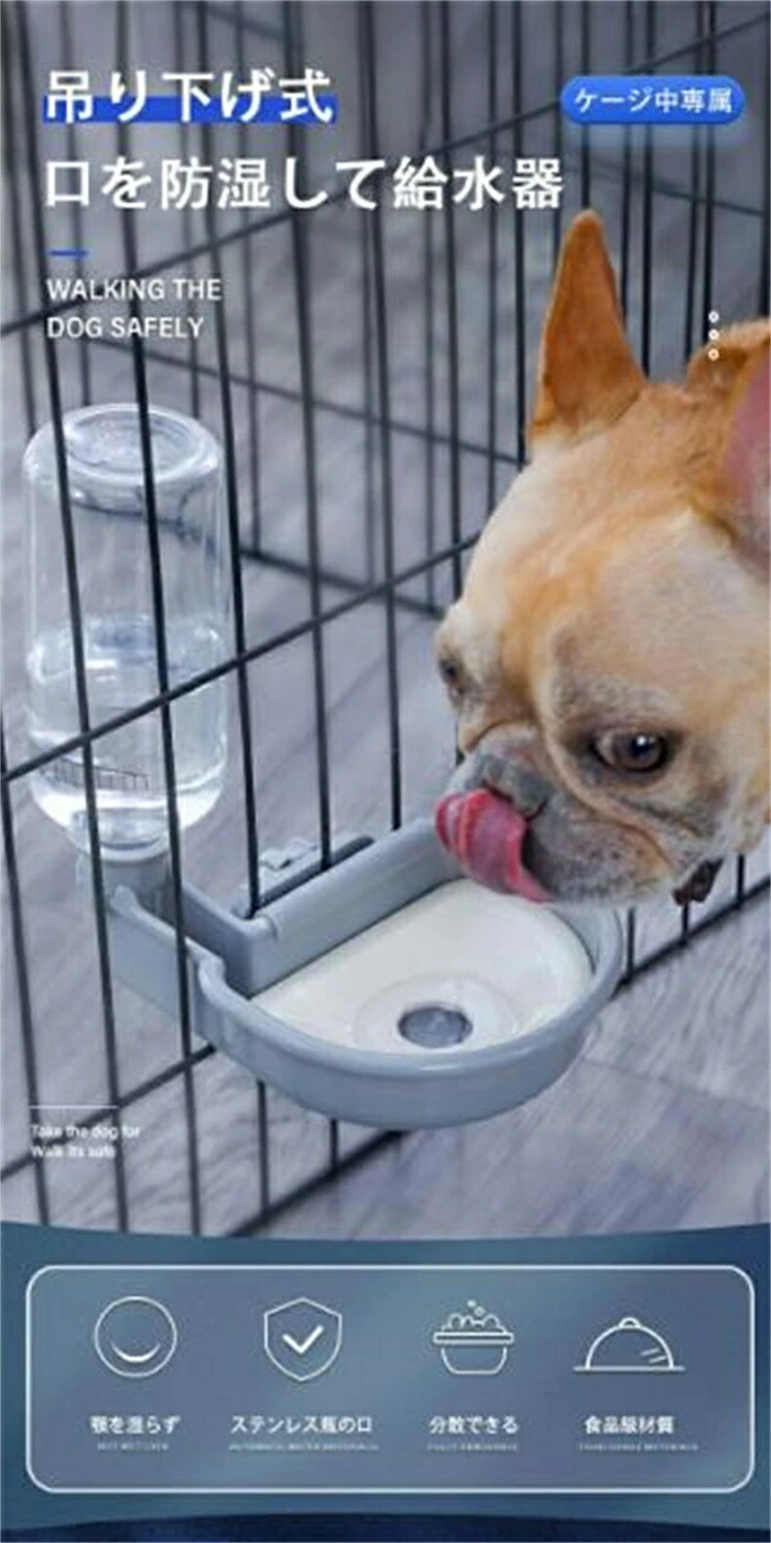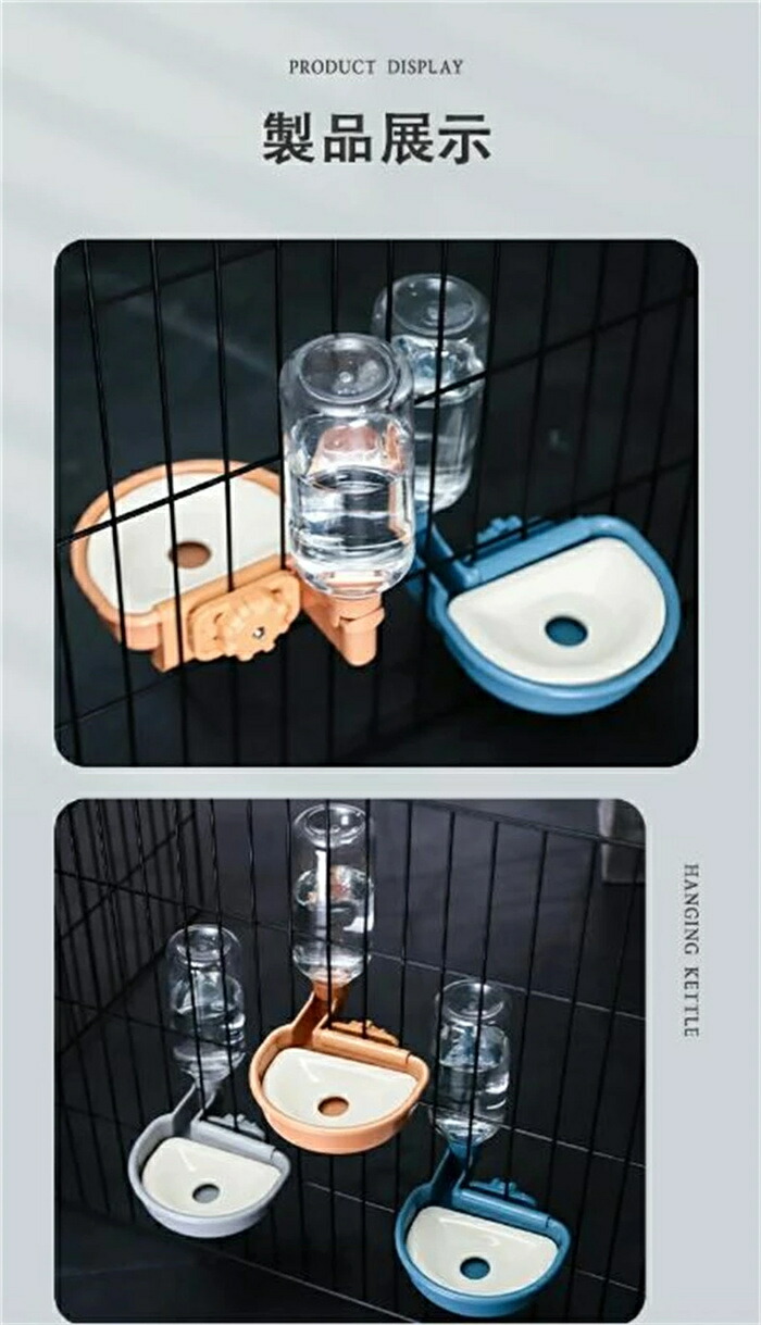 ケージ 固定 吊り下げ式自動給水器 犬 グレー オレンジ ブルー 給餌器 給水器