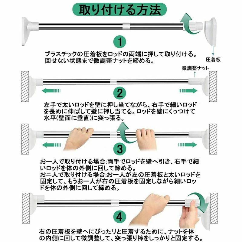 突っ張り棒 強力 伸縮棒 つっぱり 極太強力 耐重 便利 使用簡単 ステンレス 物干し 服 収納 キッチン 洗面台 脱衣所 玄関 収納棒 新生活 最大245cm 間仕切り