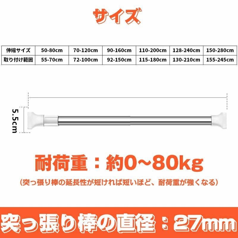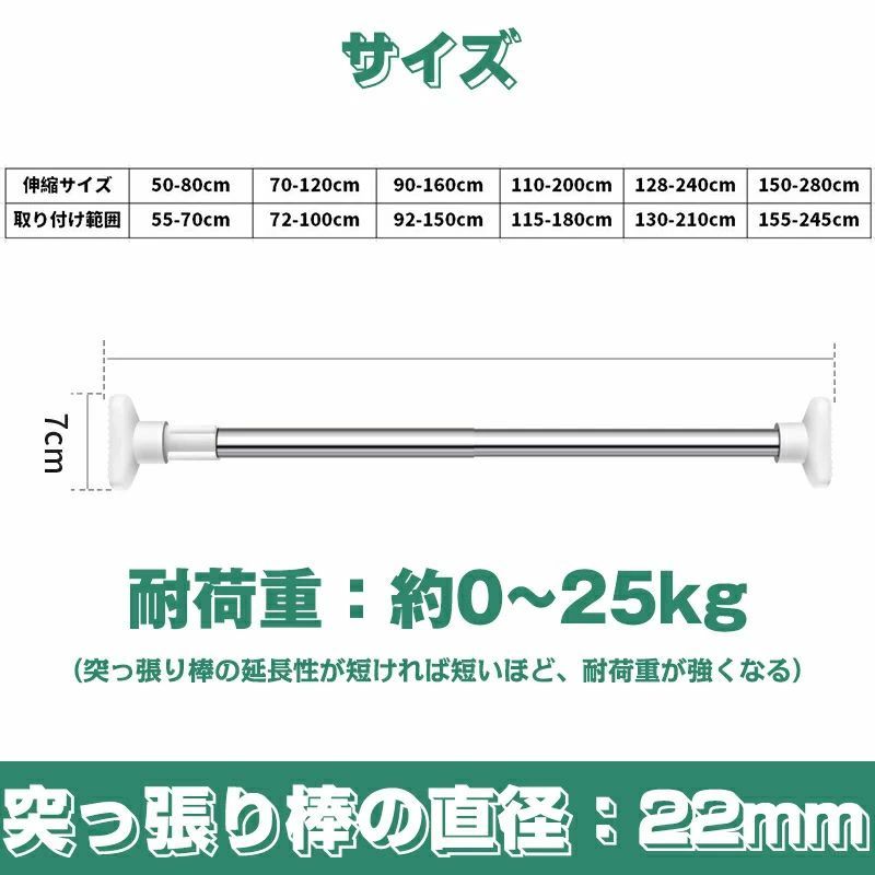 突っ張り棒 強力 伸縮棒 つっぱり 極 22mm 25mm 50-80cm(取り付け範囲55-70cm) 70-120cm(取り付け範囲72-120cm) 90-160cm(取り付け範囲92-150cm) 110-200cm(範囲115-180cm) 128-240cm(範囲130-210cm)