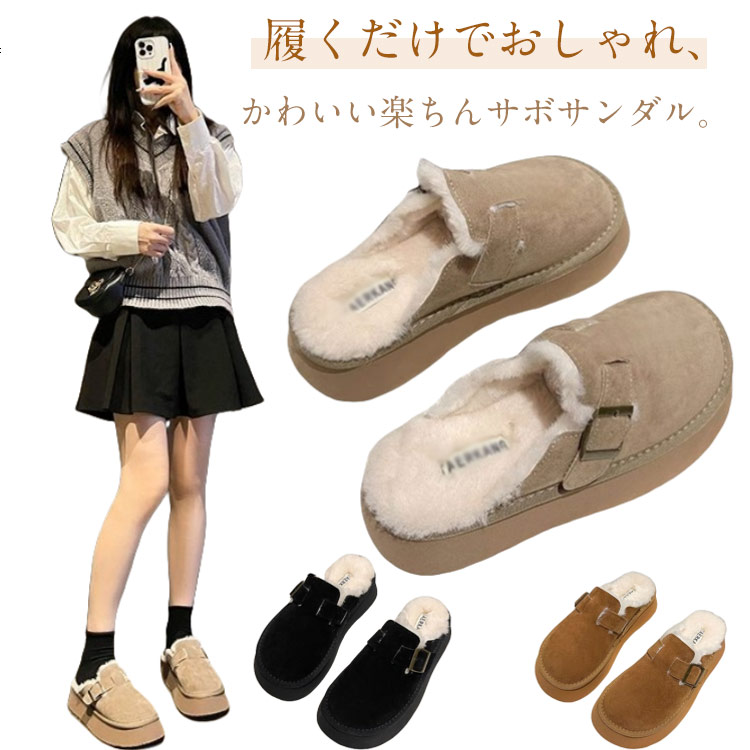 裏起毛 冬 サボサンダル 厚底 レディ レディース靴 サンダル サボ 早い者勝ち グレーブラウン ブラック ブラウン 35(22.5cm) 36(23cm) 37(23.5cm) 38(24cm) 39(24.5cm) 40(25cm) 41(25.5cm)