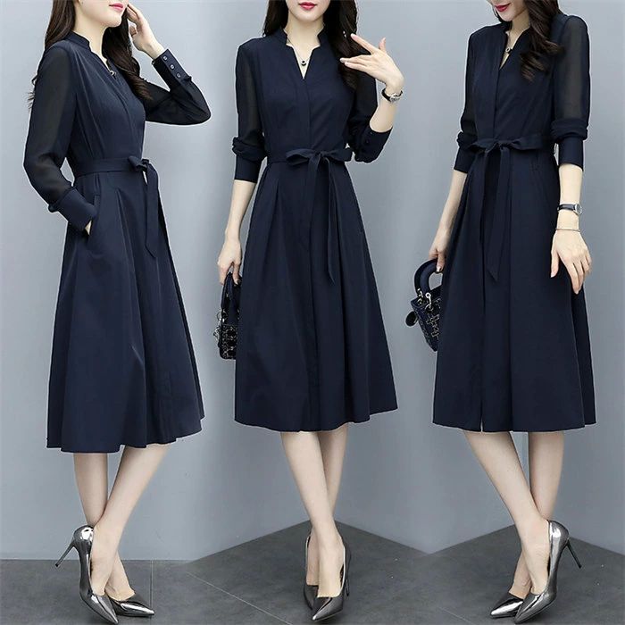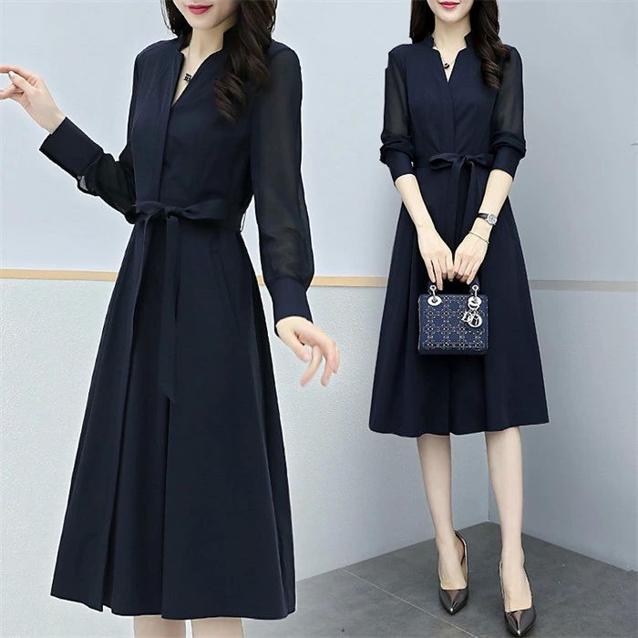 着痩 きれいめ フレアワンピース Vネ レディースファッション 続々登場 S M L XL 2XL