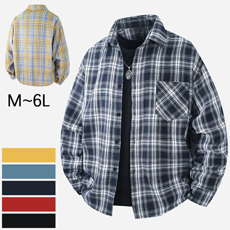チェックシャツ カジュアルシャツ メンズ シャツ シャツジャケット 6L 大きいサイズ スプリングコート 5色 ブラウス 長袖 ゆったり 開襟 おしゃれ トップス 春 秋 通勤 アウター