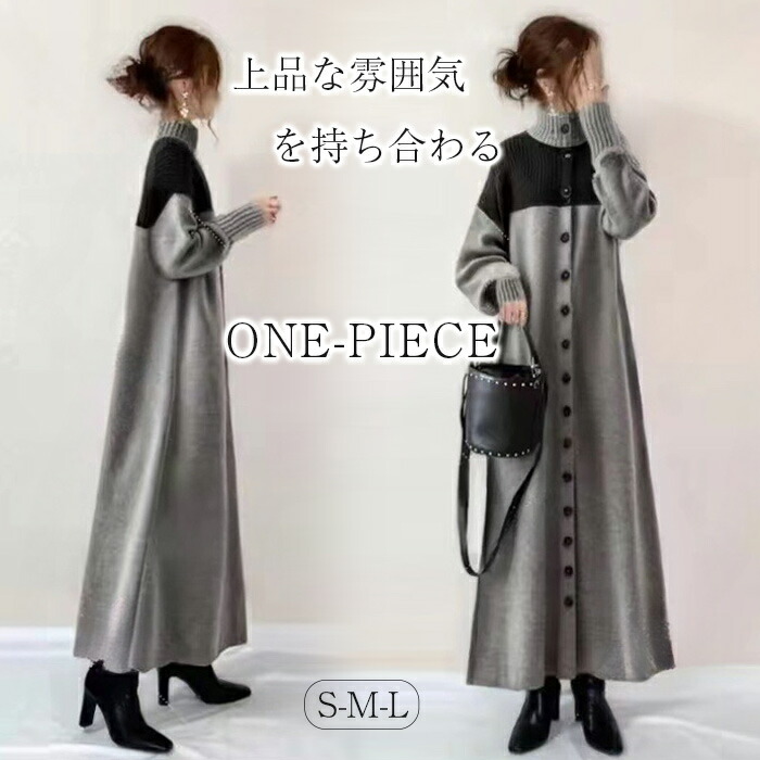 レディース ワンピース きれいめ 秋冬 ロングワンピース ロング丈 可愛い エレガント 体型カバー 秋 冬 ニットワンピース 切り替え セーター ニットソー ロングワンピ 上品