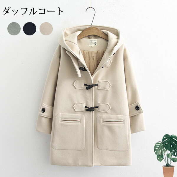 ダッフルコート レディース アウター 冬服 フード付き あったか 厚手 暖かい ミディアム丈 カジュアル 上着 オシャレ シンプル ゆったり かわいい 可愛い スクールウェア 学生 中綿ジャケ 女の子