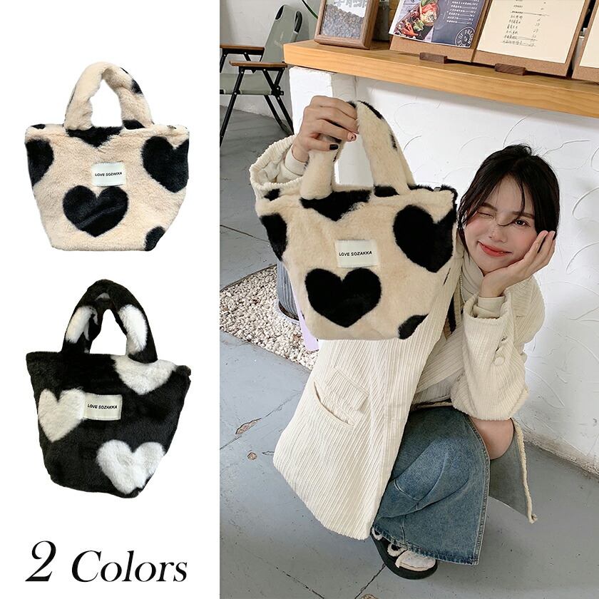 トートバッグ 秋冬 ファーバッグ ふわふわ レディース ミニバッグ ハンドバック 手提げ ハート バッグ かばん 小さめ アウトドア シンプル おしゃれ かわいい クリスマスプレゼント ファ お出かけ