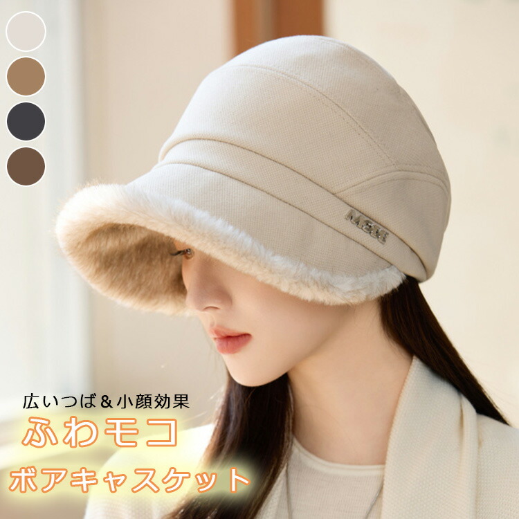 深めに被れて何処から見ても美しいシルエットの、つば広キャスケット 裏ボア付き 厚手 防寒対策 小顔 効果 暖かい おしゃれ かわいい きれいめ おしゃれ 送料無料