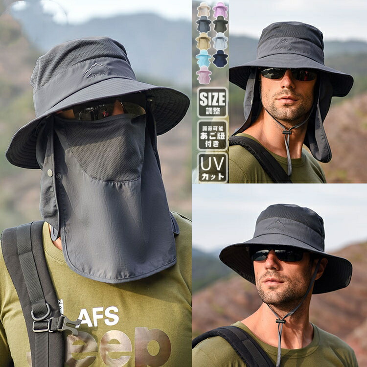 バケットハット サファリハット 3way ハット アドベンチャーハット 帽子 UVカット 紫外線対策 日焼け防止 日よけ 日除け つば有り 撥水 はっすい レディース 男性用 フェイスカバー付 メンズ