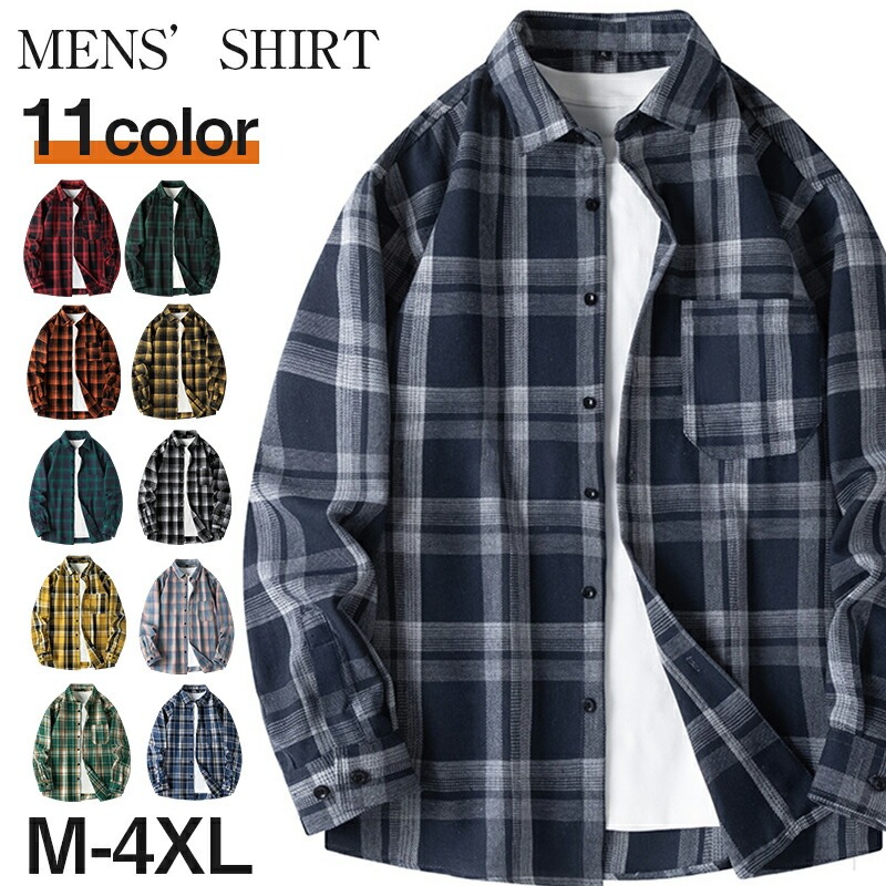 厚手で暖かい綿素材を使用した長袖ネルシャツ カジュアルに羽織れて秋冬のメンズトップスに最適な大きいサイズ展開