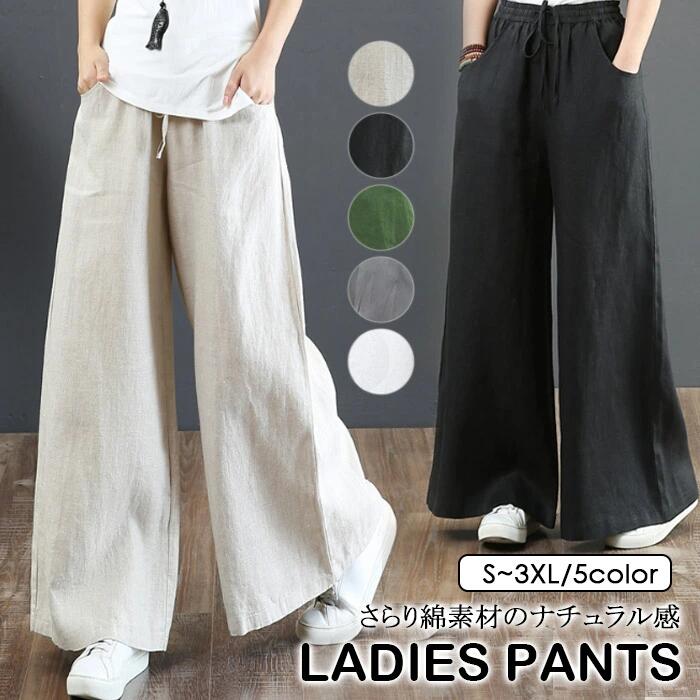 リネンワイドパンツ レディース パンツ ワイドパンツ 無地 サルエルパンツ 麻 綿リネン ゆったり ワイド アンクル丈 ボトムス 美脚効果 ストレッチ OL 通勤 オフィス おしゃれ