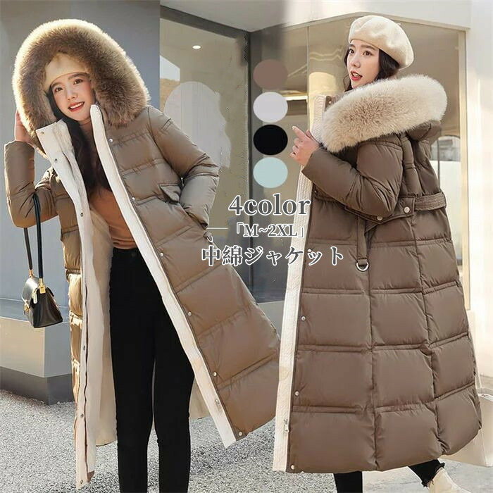 ダウンコート「~2」中綿コート 「品質良い」ロングコート 体型カバー フード付き 秋冬アウター 防寒 暖かい ダウンジャケット 7色選択可 レディース コート フェイクファー