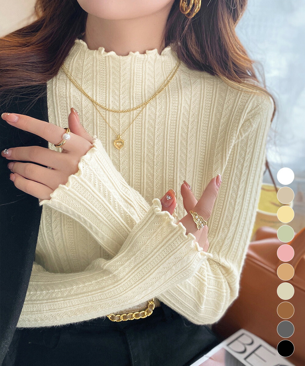 ニットソー 長袖 プチハイネック 韓国風 ニットプルオーバー 春秋冬 ニットセーター ニットインナー ハイネック 着回し きれいめ 通勤 可愛い 99JYB-001 大人