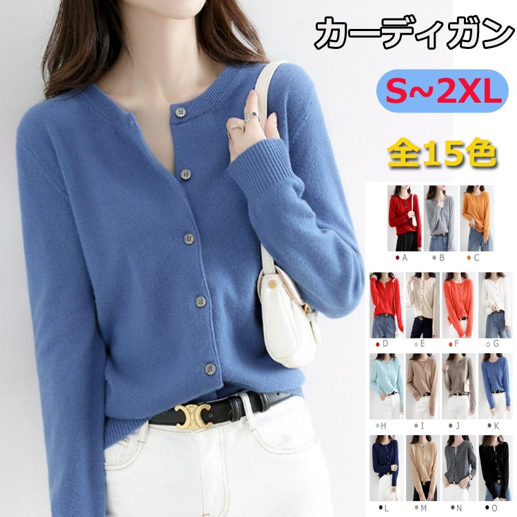 全15色 カーディガン カシミヤ人造ウール 羽織り 薄手 通勤 通学 オフィス 洗える クールネック 無地 レディース アウター ラウンド