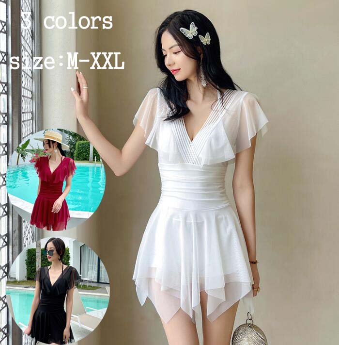水着 みずぎ 韓国風 フレアスカート ミズギ レディース おしゃれ 小胸 ワイヤー付き かわいい 水着ワンピース ワンピース 美胸 体型カバー 女性 ビキニ タンキニ ビーチウェア 日焼け パッド付き