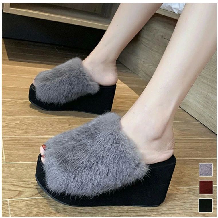 ファーサンダル レディース 厚底 靴スリッパ もこもこ 美脚 ふわ