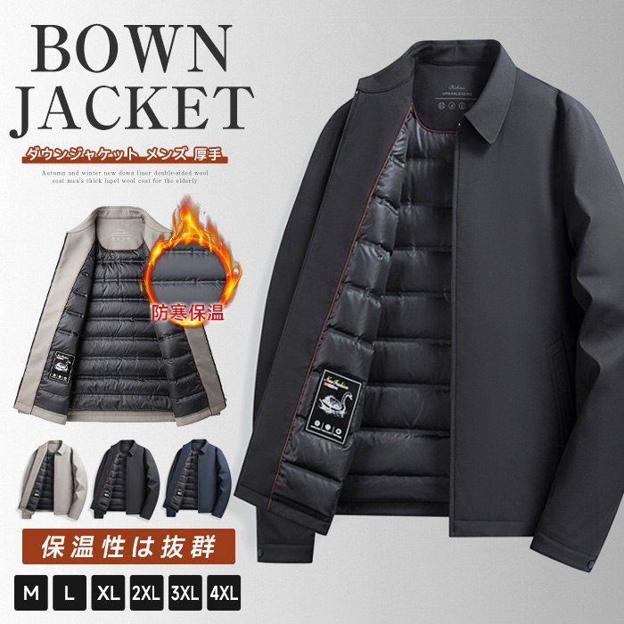防 大人 コート アウター 折襟 おしゃれ 薄手 ダウン90% ブルゾン ビジネス ジャケット メンズ ダウンジャケット 冬物