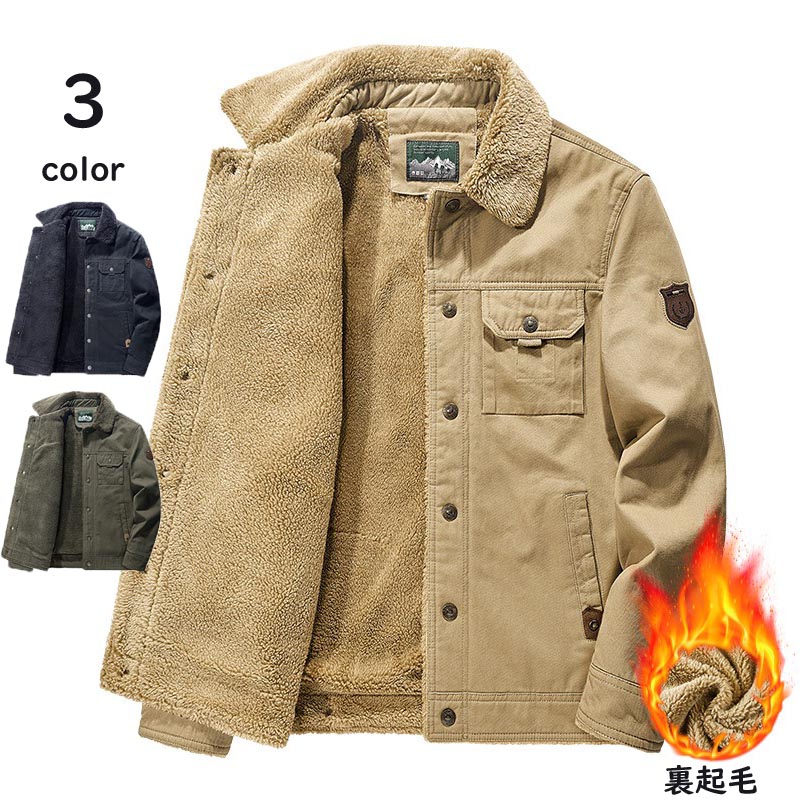 メンズ コート 大きいサイズ アウター 裏起毛 ボアジャケット 冬服 冬物 あったか アウトドア デッキジャケット 防寒 裏ボア 厚手 保温 ミリタリーコート