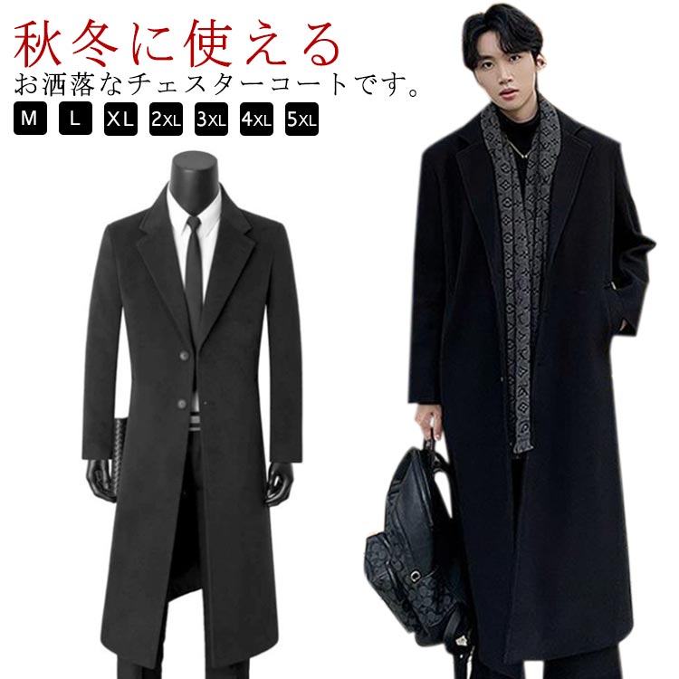 チェスターコート メンズ ロングコート アウター 体型カバー ロング丈 厚手 ゆったり お洒落 大きいサイズ 秋冬物 カジュアル