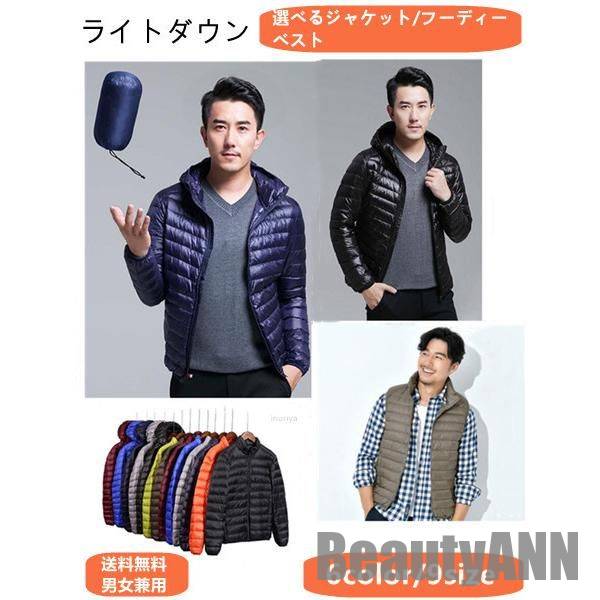 ダウンジャケット メンズ レディース ライトダウン フード付き