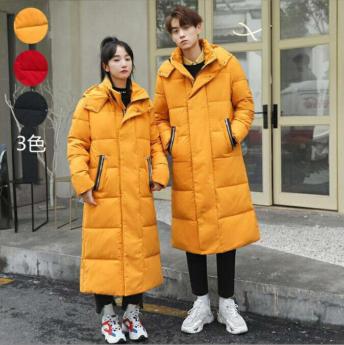 ロングコート 綿入れ ダウンコート 長袖 ダウンジャケット おしゃれ 韓国風ロング丈 軽量 アウター 秋冬 シンプル 男女兼用フード付き お揃い ペアルック メンズファッション 防寒 レ 大きいサイズ