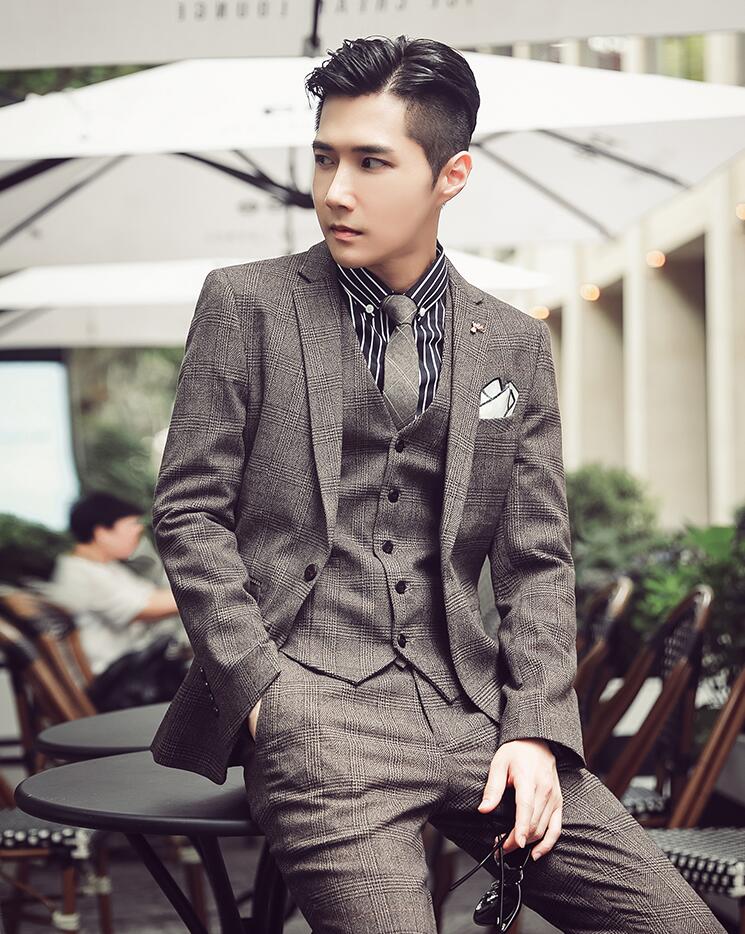 メンズスーツ 3ピース ビジネススーツ スタイリッシュスーツ 上下セット スーツセット スリーピース 男性 紳士服 チェック柄 セットアップ カジュアル ジャケット+ベスト+パンツ フォーマルスーツ