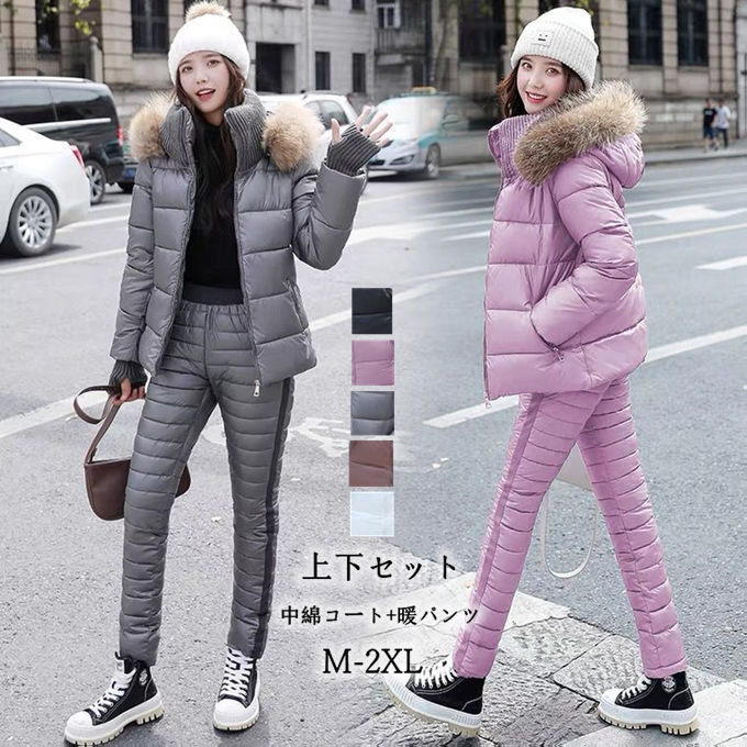 上下セット レディース 中綿コート+暖パンツ 中綿入れ 厚手 暖かい