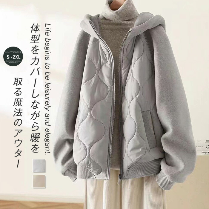 キルティング コート レディース 中綿 アウター ジャケット フード付き アウトドア 軽量 大きいサイズ 新作 パーカー 長袖 無地 厚手 トップス 前開き 羽織り 冬 ゆったり 体 秋