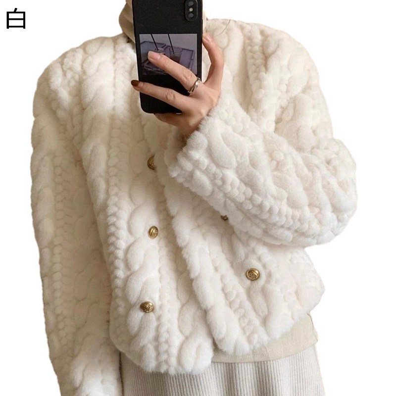 フェイクファー 毛皮コート ファージャケット レディース 編み風 防寒着 暖かい もこもこ ファーブルゾン ルース 冬着 ショート丈アウター カジュアル デート 発表会 トップス 演奏会