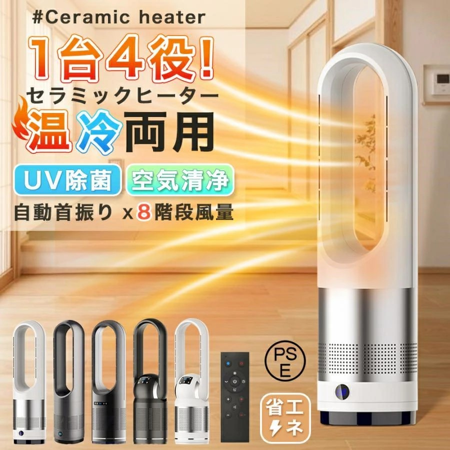 冷暖房兼用 空気浄化 リモコン首振り扇風機 スマート 冷風機 家庭用 羽根なしの扇風機 羽根なし ミュート 広角送風 省エネ 8段階風量 オフィス 大型 冷暖タイプ コード