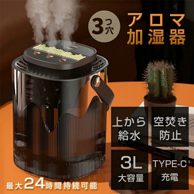 加湿器 卓上 オフィス 超音波加湿器 3噴霧口 大容量 超音波式 デュアル 3L 自動停止機能 静音 省エネ 節電 エコ オフィス大活躍 シンプル スチーム式 おしゃ 湿度表示