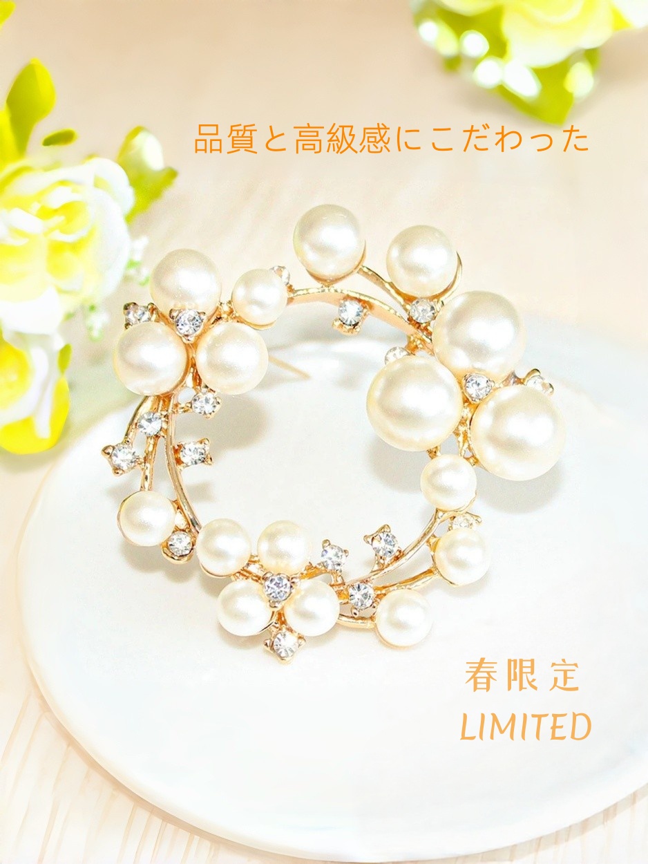 <春限定>パールダイヤブローチ イニシャルアルファベット コサージュ ピンバッチ 真珠 入学式 卒業式 卒園式 成人式 二次会 パーティー アクセサリー