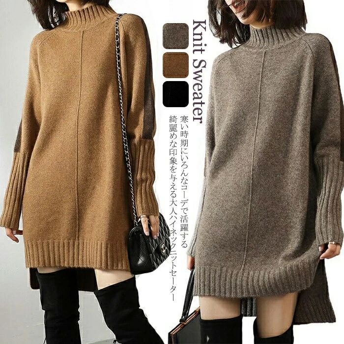 ニットトップス 秋物 冬物 ロングニットセーター ニットチュニッ