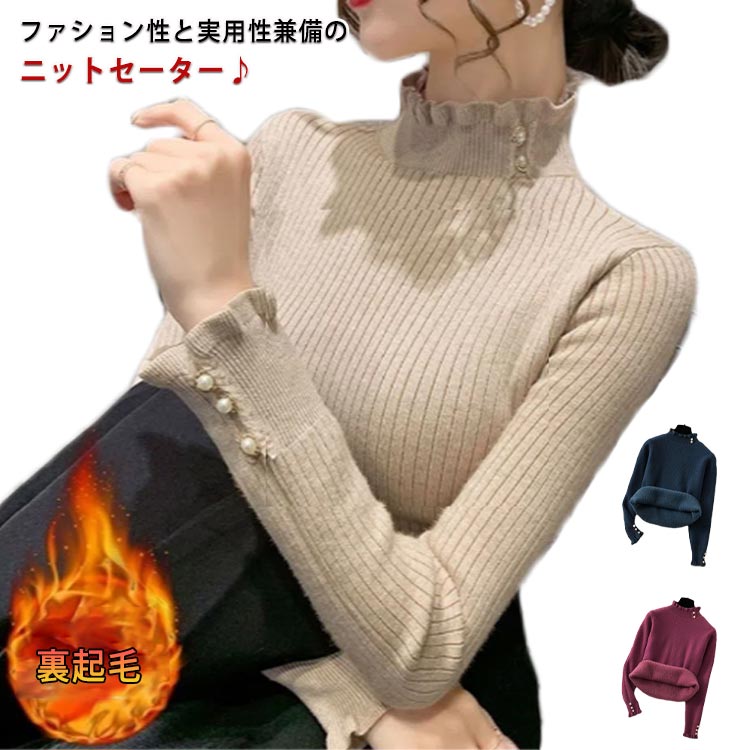 秋冬 ニットトップス レディース 裏起毛 厚手 ハイネック ニット