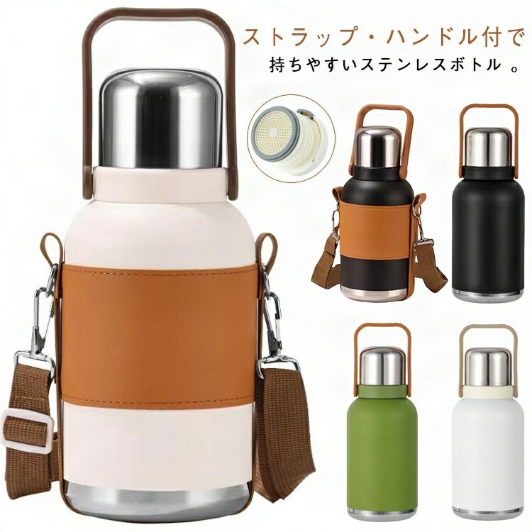 PUカバー付き コップ付き ストラップ付き 1.5リットル 保温 洗いやすい 持ち運び 直飲み 魔法瓶 スポーツボトル 大容量 保冷 マグ 広口 マグボトル おしゃれ アウトドア 水筒