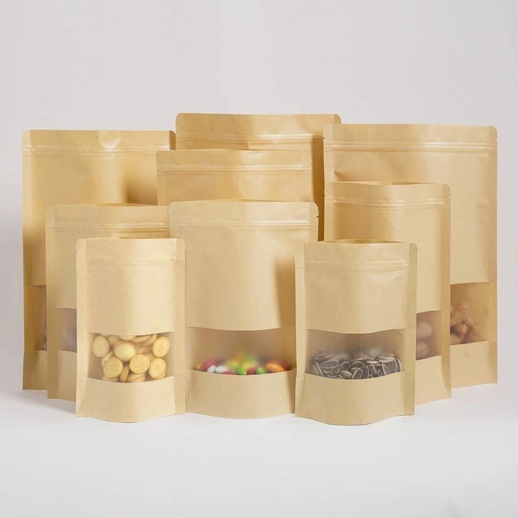 クラフト紙袋 窓付き チャック 付き 袋 密閉袋 コーヒー袋 20×30cm 防湿 防水 耐油 お菓子 ジップ袋 自立 ジッパー付き 紙袋 真空 防カビ 防臭 小分け袋 9×14cm 100 包装