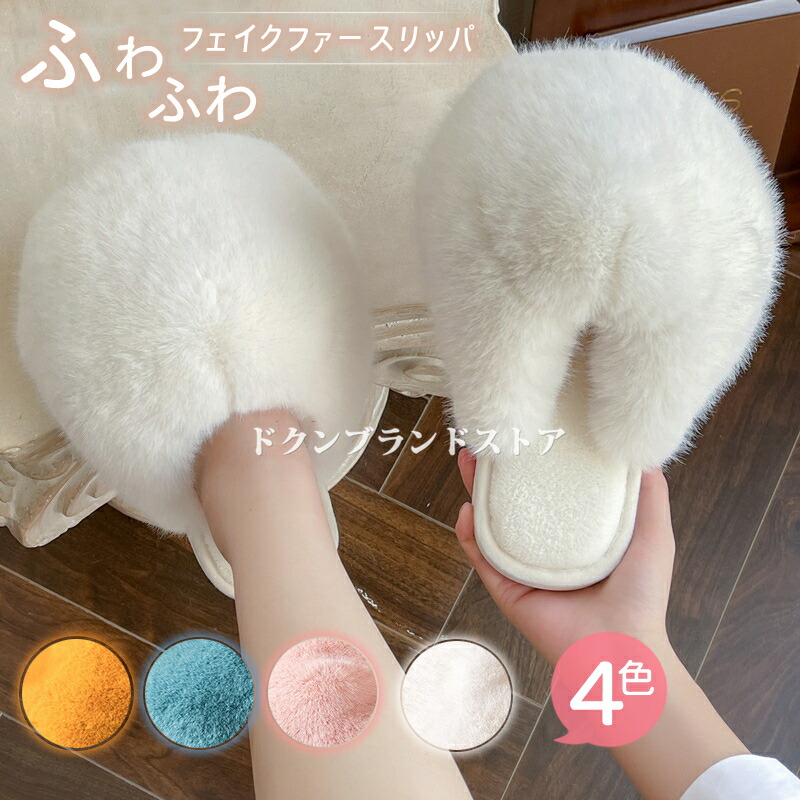 冬用 室内 スリッパ ルームシューズ 冬 レディース もこもこ フェイクファー ふわふわ 暖かい 防寒 保温 両面 裏起毛 ボア かかとなし かわいい 秋冬物 柔らかい おしゃれ シンプル あったか