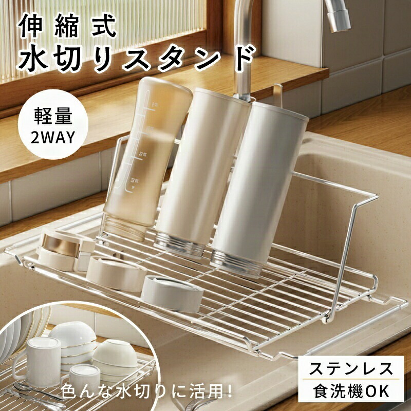 \お皿も 水筒も 立てかけられる!/ \食洗器◎ 折りたたみ◎伸縮◎ステンレス錆びない◎型/\省スペースで抜群の収納力!/